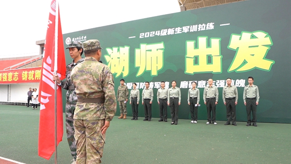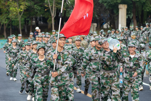 全体“新兵”们精神抖擞、斗志昂扬,迈着坚定的步伐踏上征程。行军途中,同学们步伐坚定有力,“行军拉练,为青春加冕”“生逢其时,责任在肩”“砥砺奋发担使命,勇毅前行谱新篇”,一声声响亮的口号声、歌声气贯长虹,手中高举的旗帜随风飞扬,与青春迷彩一同筑起了湖城最美的风景。大家彼此鼓励,携手并进,每一步的迈进,都是对自我的挑战与超越;每一声口号,都是青春誓言的嘹亮回响。