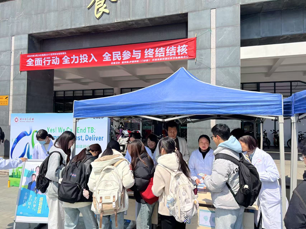 2025年3月24日是第30个“世界防治结核病日”,为提高师生结核病防病意识,有效防范结核病的传播与流行,我校举办了以“全面行动 全力投入 全民参与 终结结核”为主题的结核病防治宣传教育系列活动。本次活动由校爱卫办(公共事务管理处)主办,医学院(护理学院)、校门诊部、环渚龙泉街道社区卫生服务中心承办。