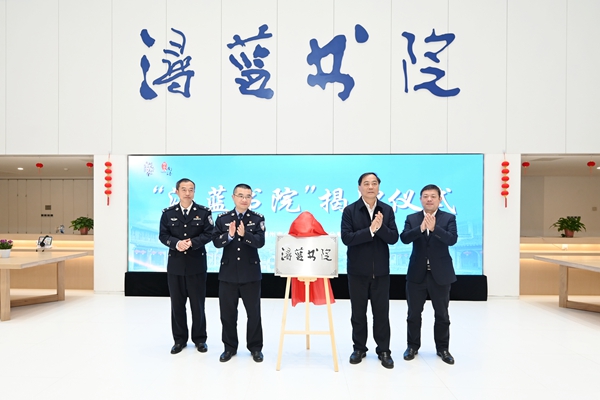 仪式上,陈永华、张震凯、翟海峰、吴金满共同为“浔蓝书院”揭牌。人文学院与南浔公安签署合作协议书。
