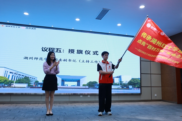 丁颂辉为本次活动进行了捐赠,沈维勇为志愿者代表颁发“‘湖州红脉 星火接力’大使”聘书。成晓为实践团队授旗,与会领导和嘉宾共同点亮启动屏幕。
